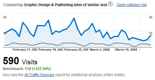 I’ve tested it against a blog site regards to “Graphic Design & Publishing” verticle. What I’ve noticed is that the Google’s benchmarking data starts to appear from February 09, 2008.