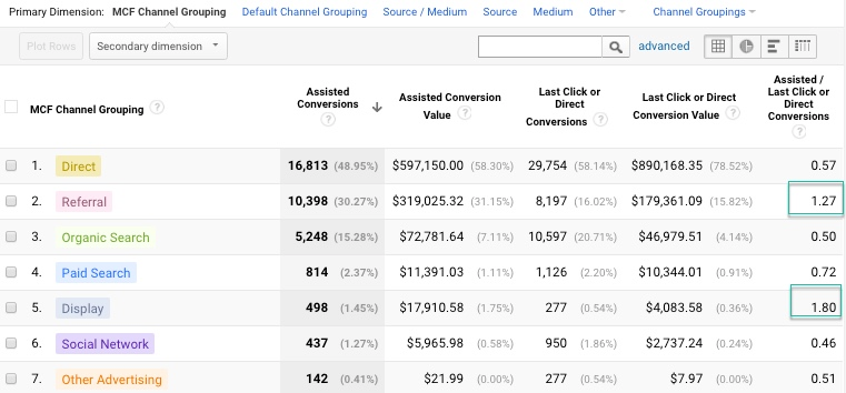 This report shows you that certain channel like Referral and Display Ads are more likely to assist another channel in sealing the deal. In other words, if you’re tracking last touch attribution only channel like Display Ad where you are spending money may not be getting the credit it deserves.