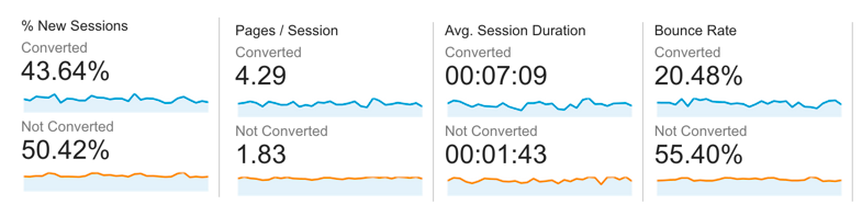 As you can see from this basic measure Pageviews per Visit, and the segmented views comparing people who converted Vs. people who have not converted. This immediately tells you the amount of content or pages accessed consumed by the users are very different. Basically, the engagement level is different from these two different segments.