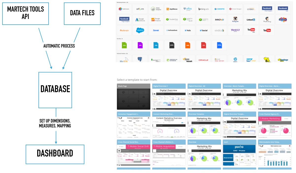 So typically, the Marketing Technology tools mentioned above would connect to the marketing technology platforms through API, and other sources are flat files like Excel, CSV, etc. Finally, the third type of data directly connects to MySQL, Redshift, Hadoop, etc.