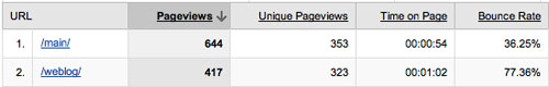 In this example website, I noticed that bounce rate was much higher than the other site section.