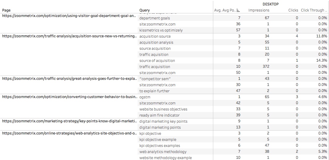 First, I need to say that since Google has limited its visibility on keywords for Organic Search within Google Analytics, I’ve been using Google Search Console with Tableau to analyze my content’s performance and its associated keywords. I get ideas from this to optimize content.