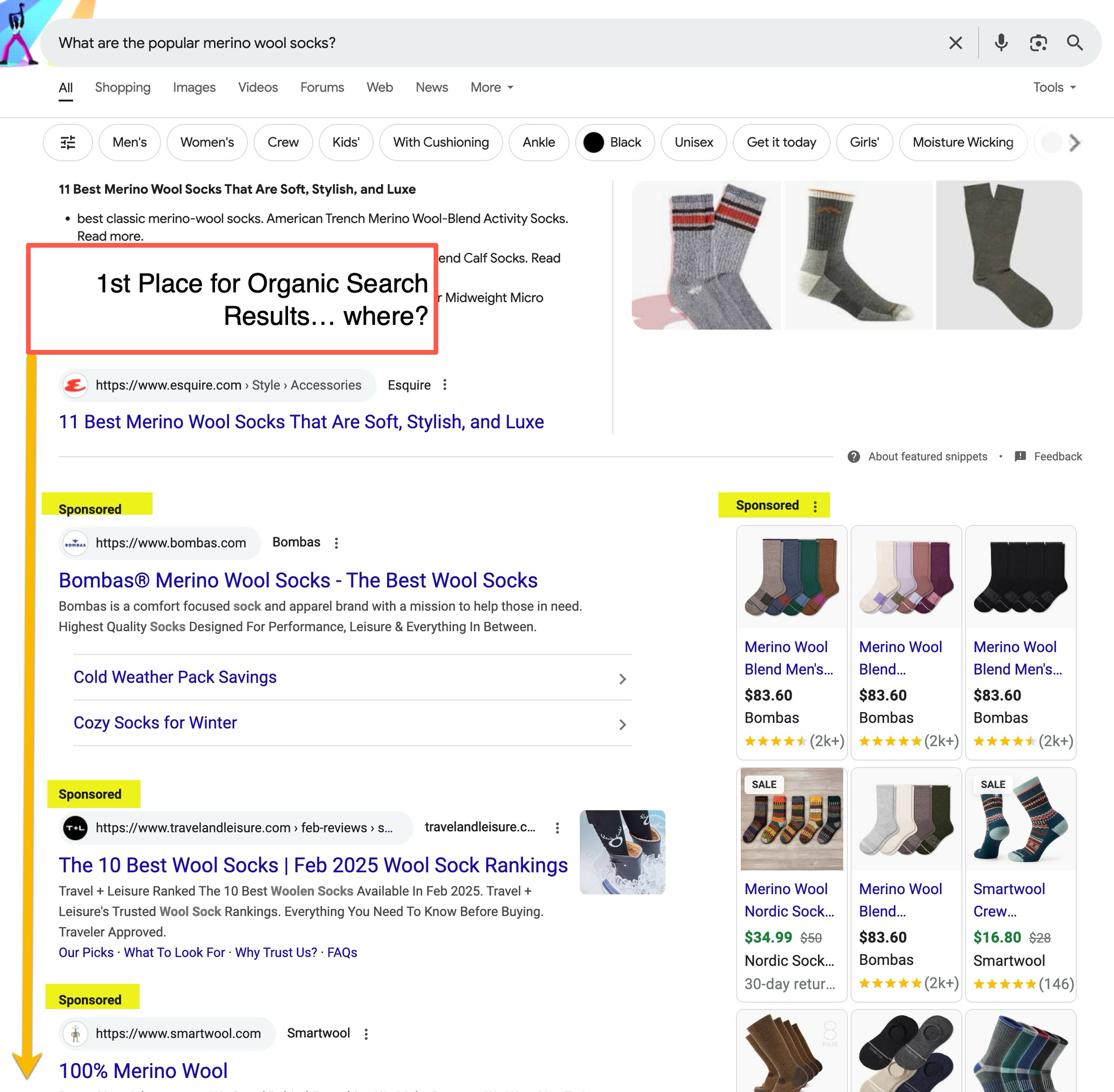 Even if your organic ranking remains strong, losing SERP features to a competitor can push your result lower—in some cases, below the fold. For mobile users especially, this could mean they never even see your listing.