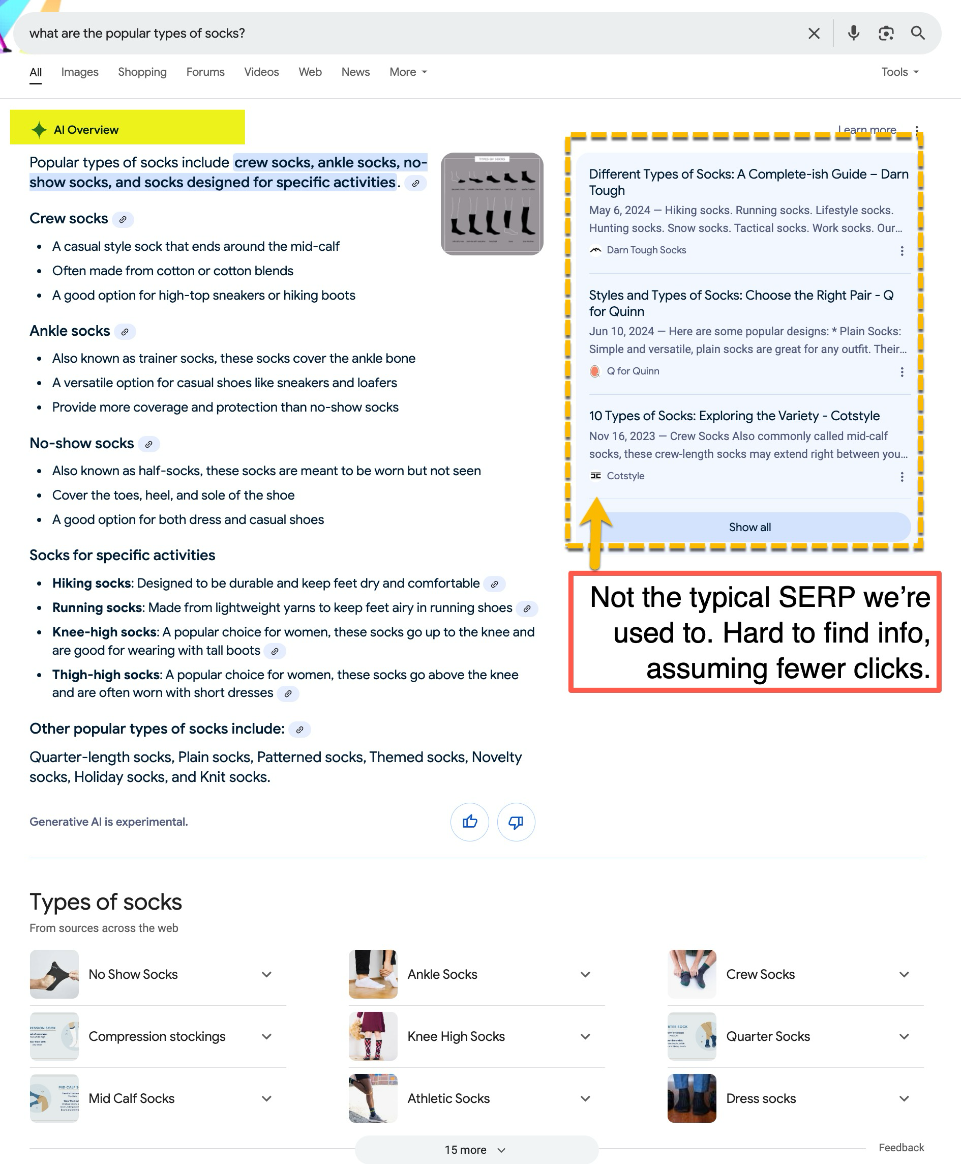 This change positions organic listings below these new, prominent features, reducing clicks across the board—particularly for informational content.