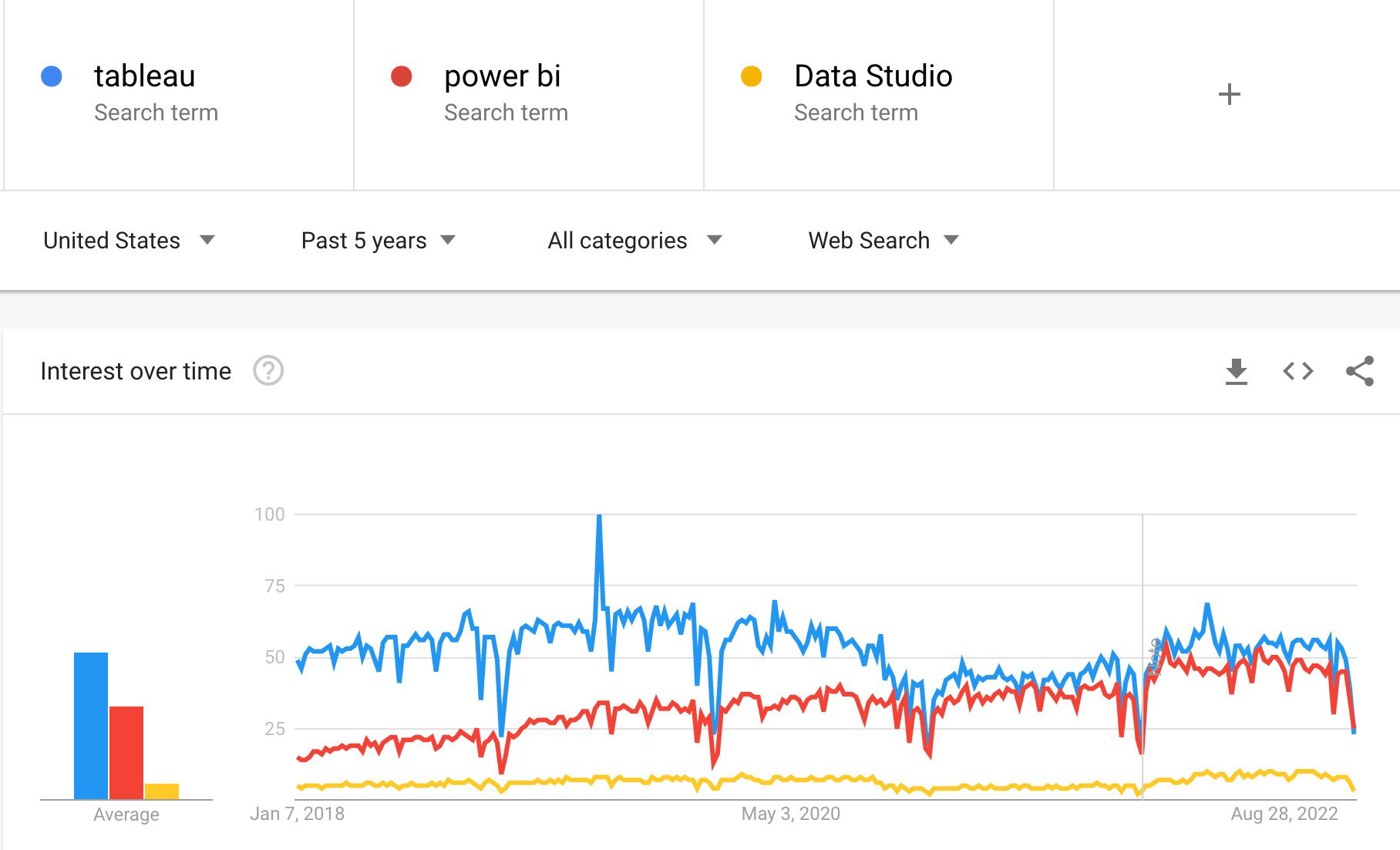 You can see from the Google Trends data and PowerBI market share that PowerBI is becoming increasingly popular. This is likely due to its user-friendly interface, powerful features, and the fact that analysts can use it in conjunction with Microsoft Office 365.